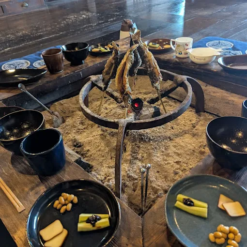 囲炉裏を囲んで薪をくべる体験は、とても心が安らぎました😃